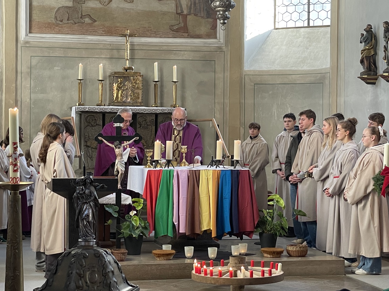 In einem wundervollen Gottesdienst verabschiedete sich die Pfarreiengemeinschaft Giebelstadt-Bütthard von Herrn Pfarrvikar Hofmann. Vertreter der Gemeindeteams auf Ortsebene, gemeinsamer Pfarrgemeinderat, Ministranten aller Ortsteile und viele mehr dankten gemeinsam mit den Hauptamtlichen Pfarrer Franz Schmitt und Pastoralreferent Benedikt Glaser dem in den (Un-) Ruhestand gehenden Pfarrvikar für sein langjähriges Wirken bei uns.