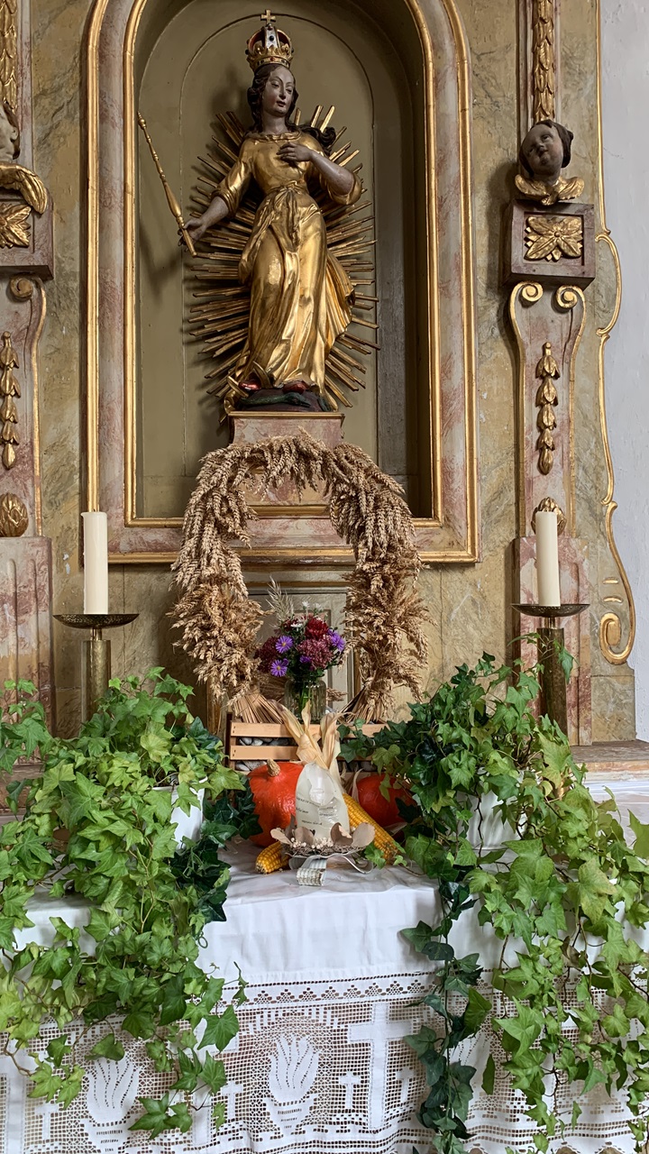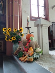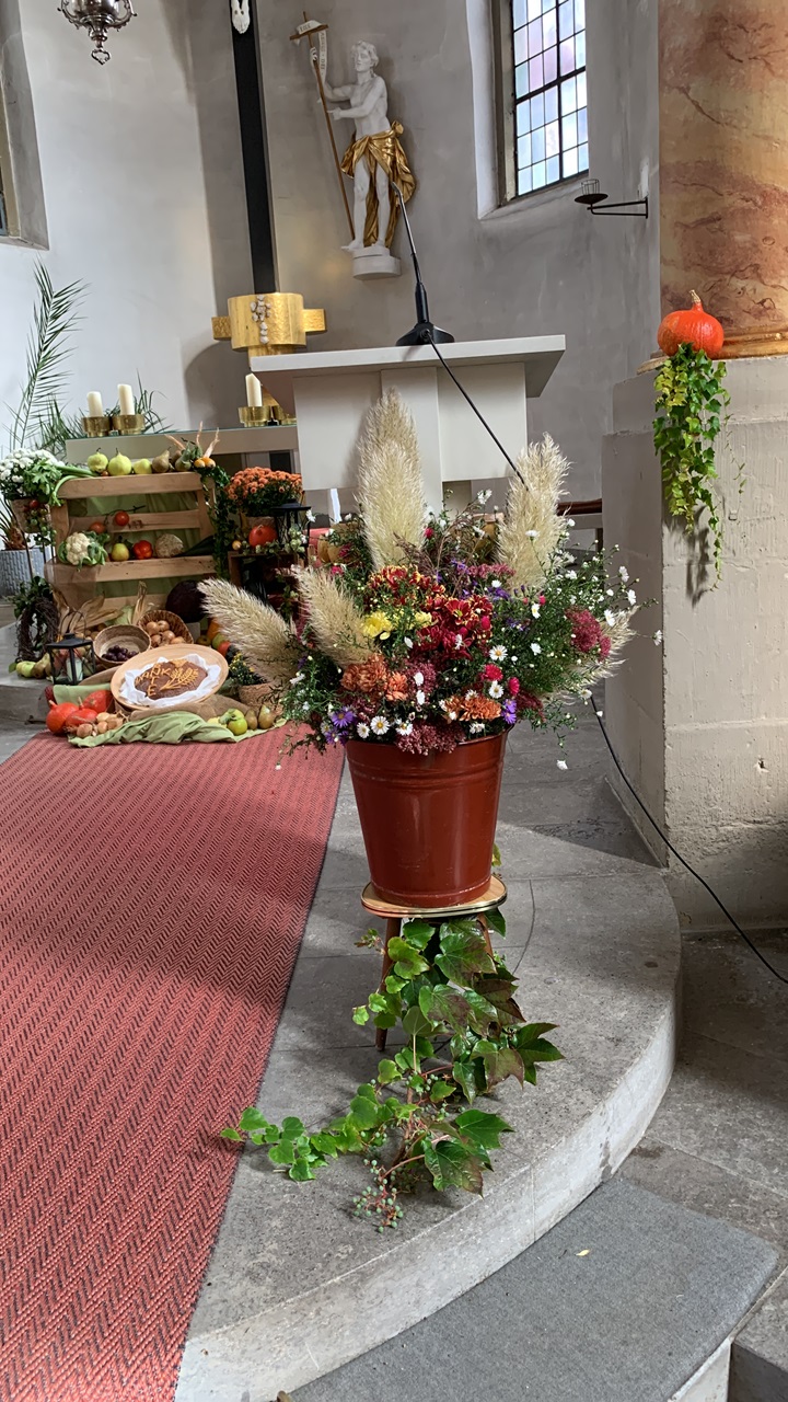 Wir wollen „Danke“ sagen für die vielen großen und kleinen Früchte des Feldes und der Gärten. Aber auch für die Blumen und Gräser. Alles ist uns von Gott geschenkt und anvertraut.