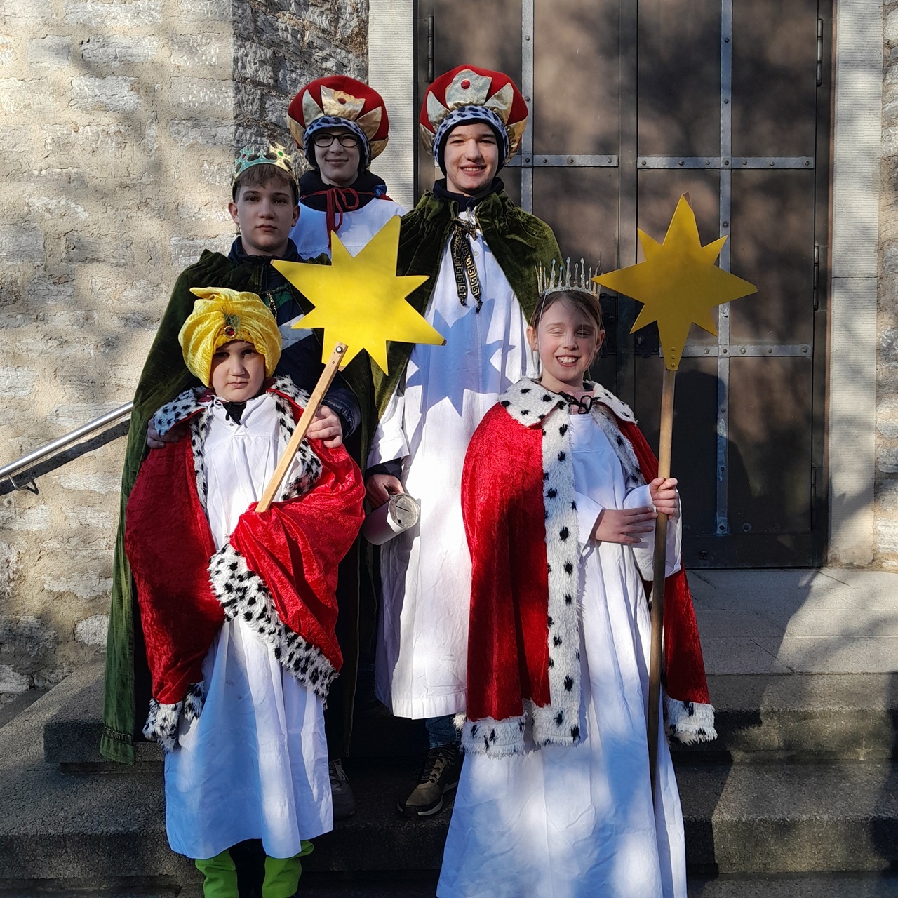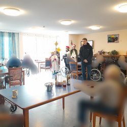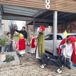 Erstmals im Rahmen eines Highlight Sunday Gottesdienstes wurden die Sternsinger ausgesandt, um die Friedensbotschaft zu überbringen. Am Tag der Heiligen Drei Könige besuchten die Sternsinger auch die beiden Alten- und Seniorenheime in Giebelstadt, um den Segensspruch in allen Stockwerken an die Türen der Gruppenräume zu schreiben. Pastoralreferent Benedikt Glaser, der die Sternsinger begleitete, erzählte den erstaunten Senioren, dass er als junger Theologiestudent auf Besuch in Brasilien, der dortigen Kirchengemeinde den Brauch der Sternsinger Aktion weitergab.