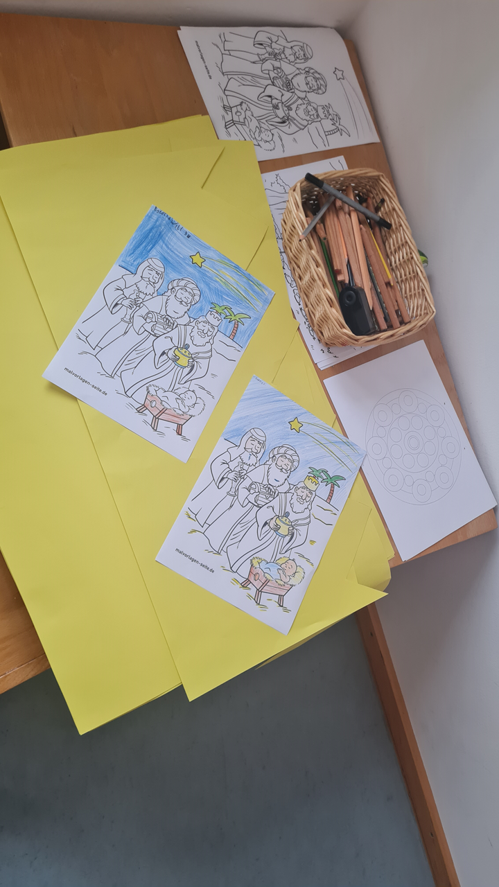 Der Höhepunkt des Tages war dann der weihnachtliche Gottesdienst, in dem die Ministranten im Sternsinger-Gewand das Evangelium lebendig werden ließen und die Kinder ihre selbst gebastelten Dreikönigskronen präsentieren konnten.