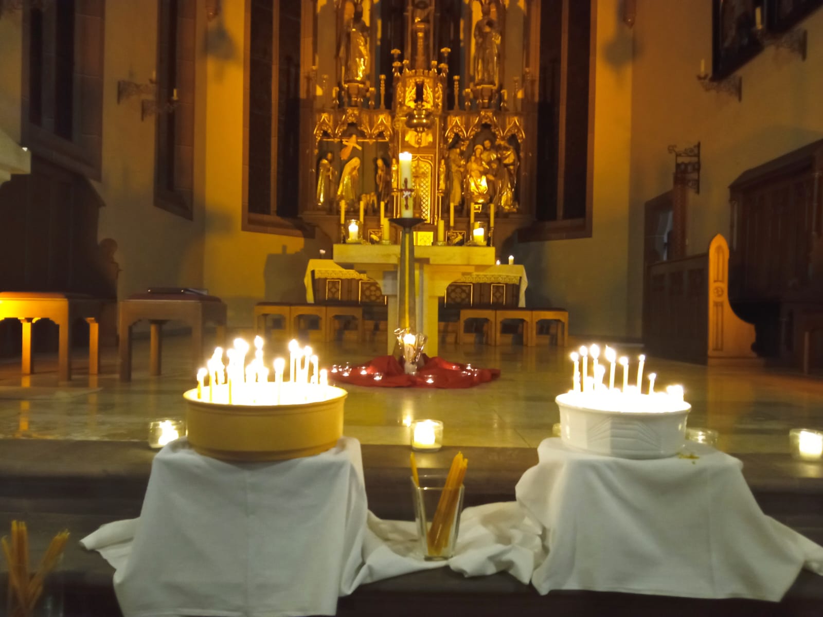 Über hundert Menschen fanden am Sonntagabend den Weg in die Kirche St. Peter und Paul in Essfeld. Zum Einstimmen genossen wir den kirchenslawischen Gesang zweier ukrainischer Flüchtlinge, die in ihrem Heimatland mehrere Jahre Gesangsausbildung genossen haben. Direkt ein Gänsehautmoment. Wundervoll berührende Texte ließen nachdenken und Dankbarkeit empfinden. Wir wurden aber auch von Irmgard Mark und Cilly Schenkel, die die Lichtfeier gestaltet haben, aufgefordert eine Kerze zu entzünden. Diese sollte symbolisch für ein persönliches Anliegen oder eine Bitte für einen lieben Menschen stehen. Dank der Begleitung weiterer Musiker hatten die Teilnehmenden die Möglichkeit lautstark oder besinnlich die Lieder zum Thema Licht mitzusingen. Abgerundet wurde der Abend mit Häppchen und Punsch. Dabei konnte man in der Kirche beieinanderstehen und sich über verschiedene Themen austauschen. Ein wunderbares Format, das Dank vieler Helfer im Vorder- und im Hintergrund stattfinden konnte.
